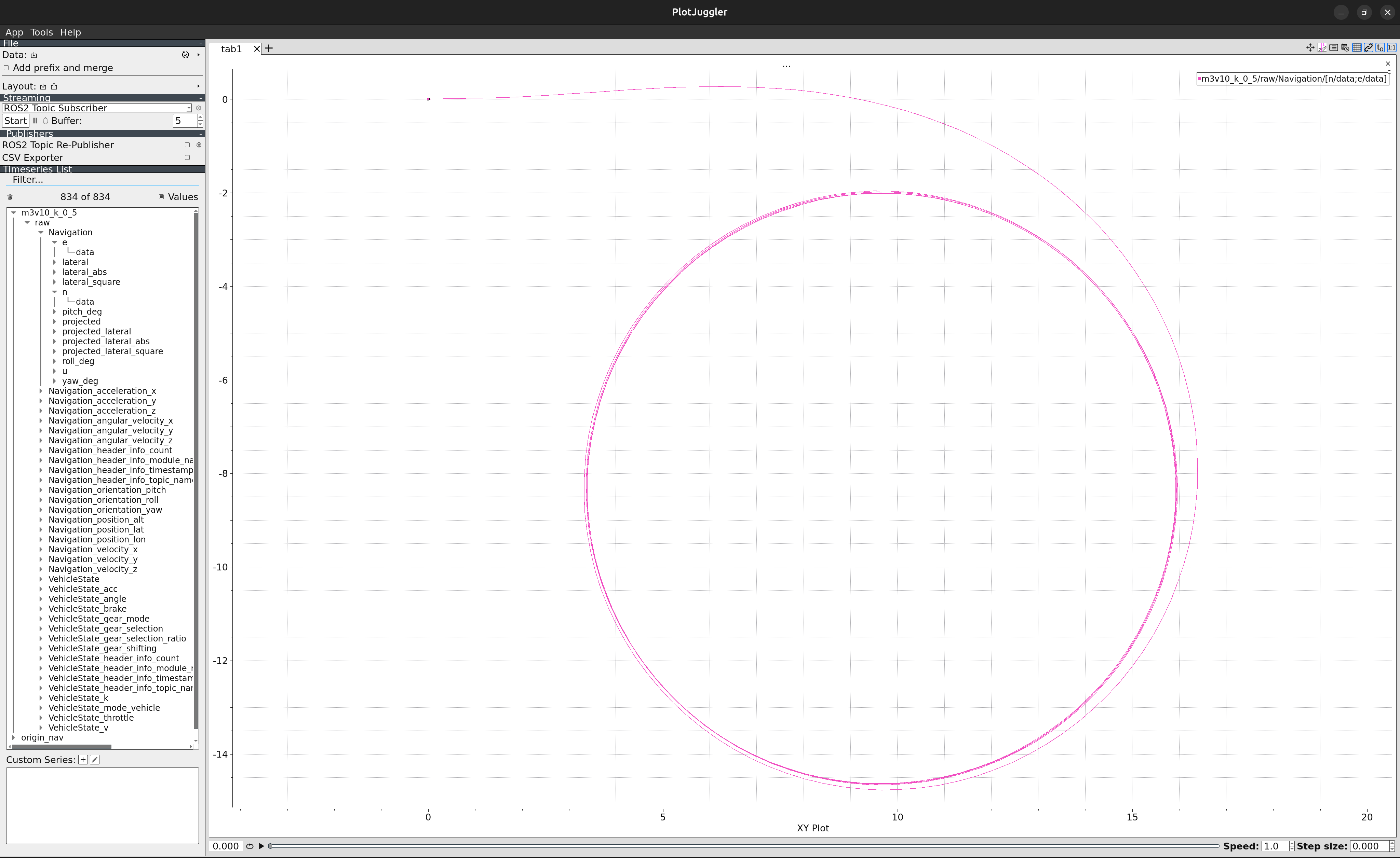 为了方便,我修改了默认的steering_curve,使其在任意速度下无转角衰减。并获得如下简单测试数据: